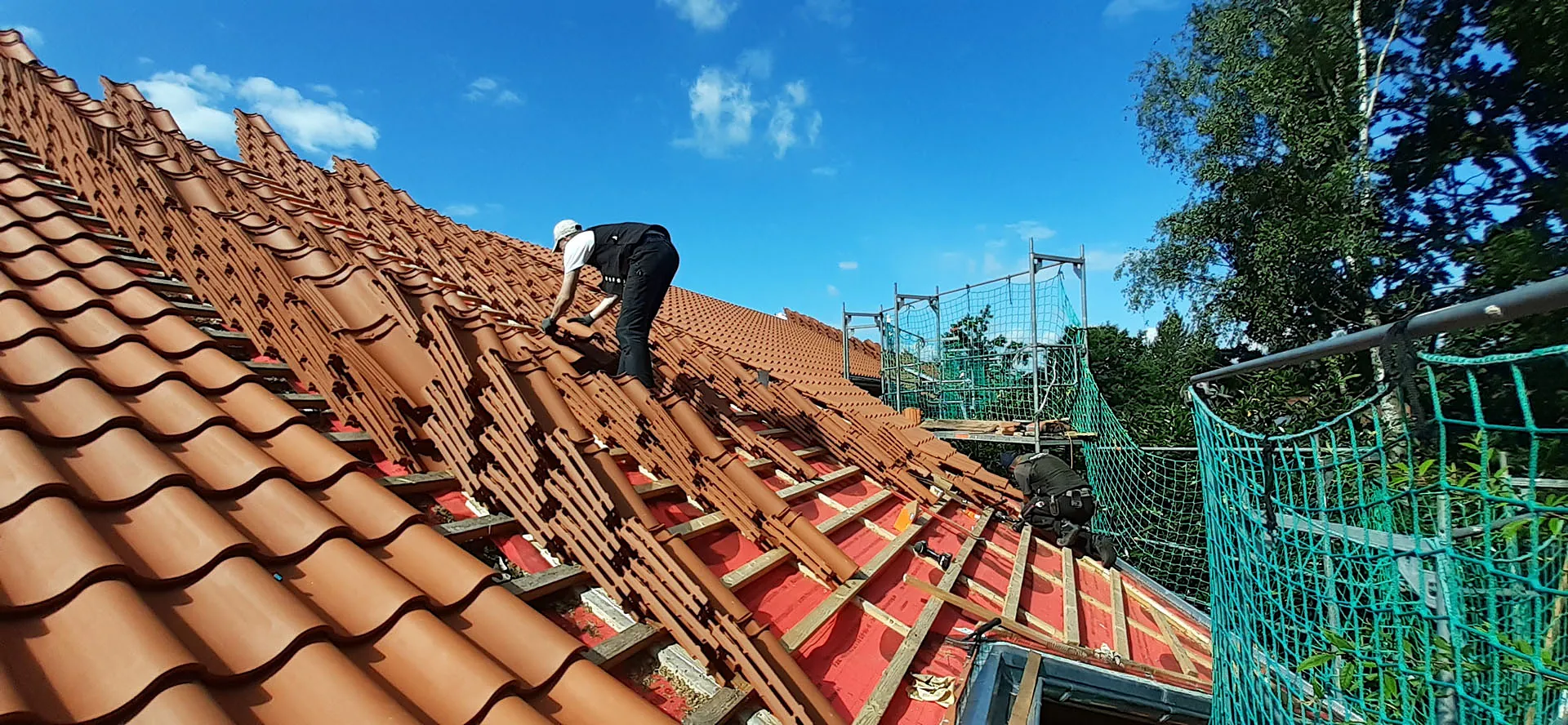 Neueindeckung oder Sanierung von Steil-/ Flachgeneigten Dächern mit Ton-/ Betonziegel, Schiefer und Metall.